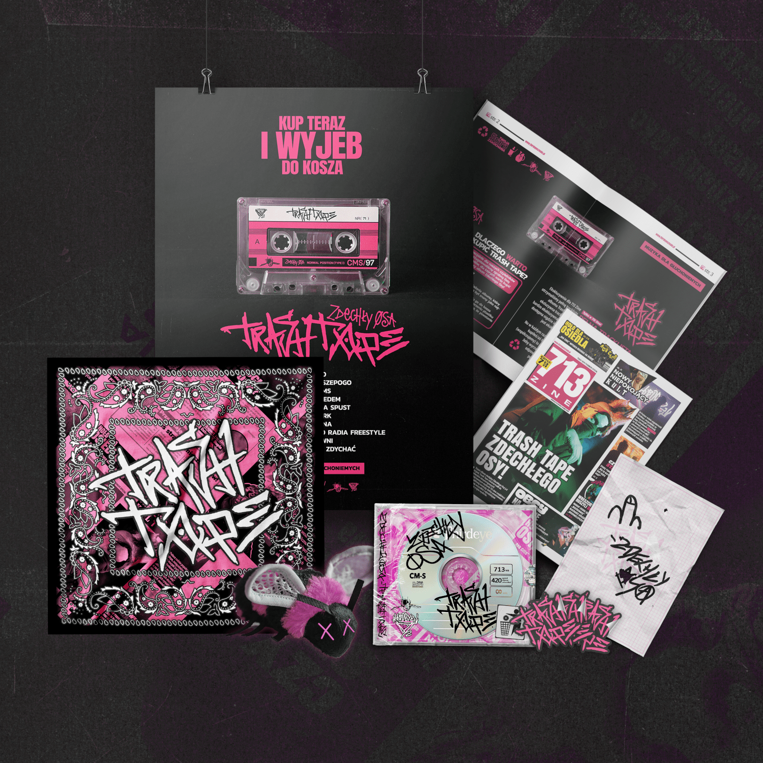 Niestety światło dzienne ujrzy zaraz trzeci studyjny album Zdechłego Osy, nazwany trafnie „TRASH TAPE”. Jest to, jak już wiadomo, najgorszy album tego artysty, bo nie jest to „stary” Osa i w ogóle bez sensu. Właściwie to wcale nie warto tego słuchać i wie to każdy prawdziwy fan Osy. Ale za to ten limitowany pakiet pre-orderowy jest naprawdę dojebany i zawiera: